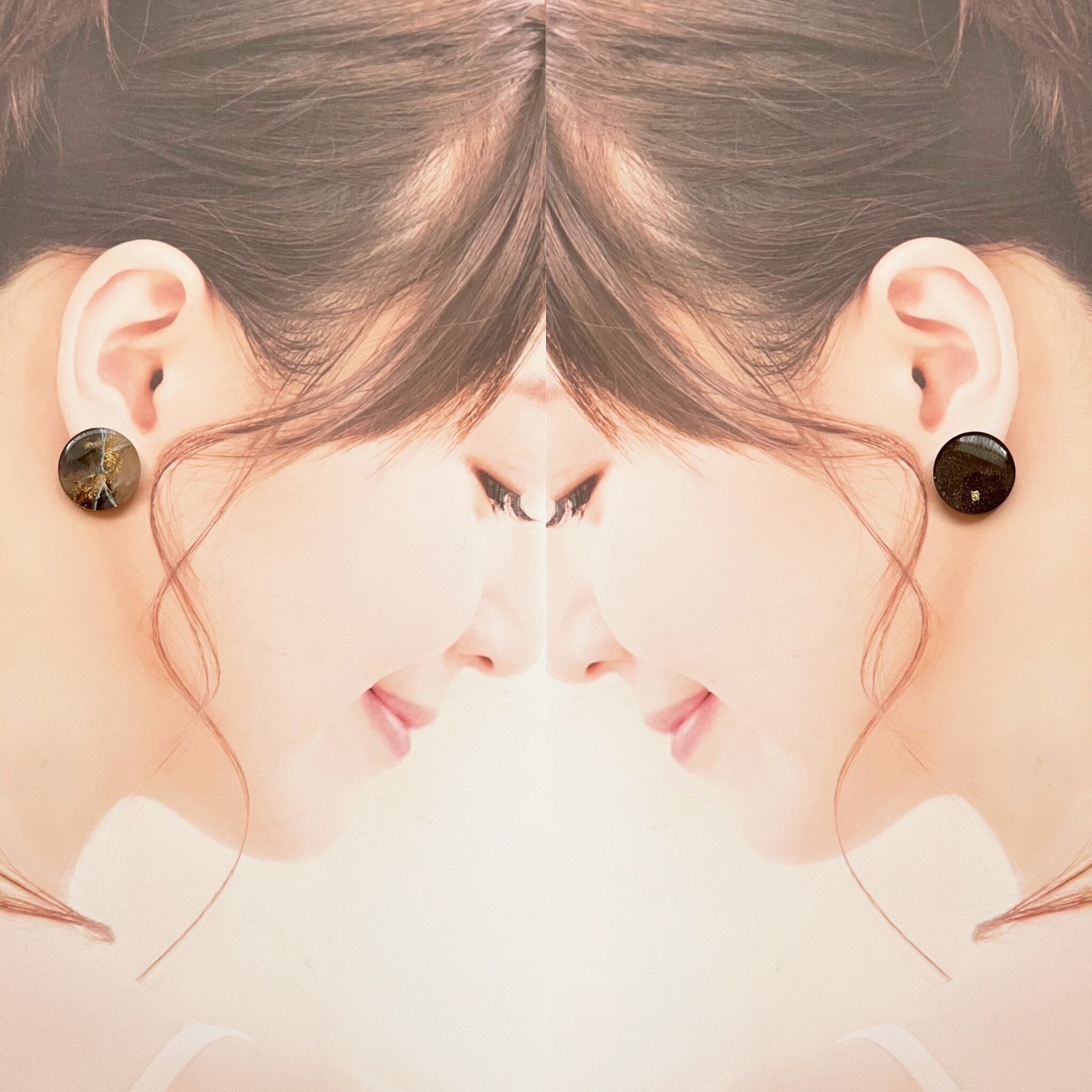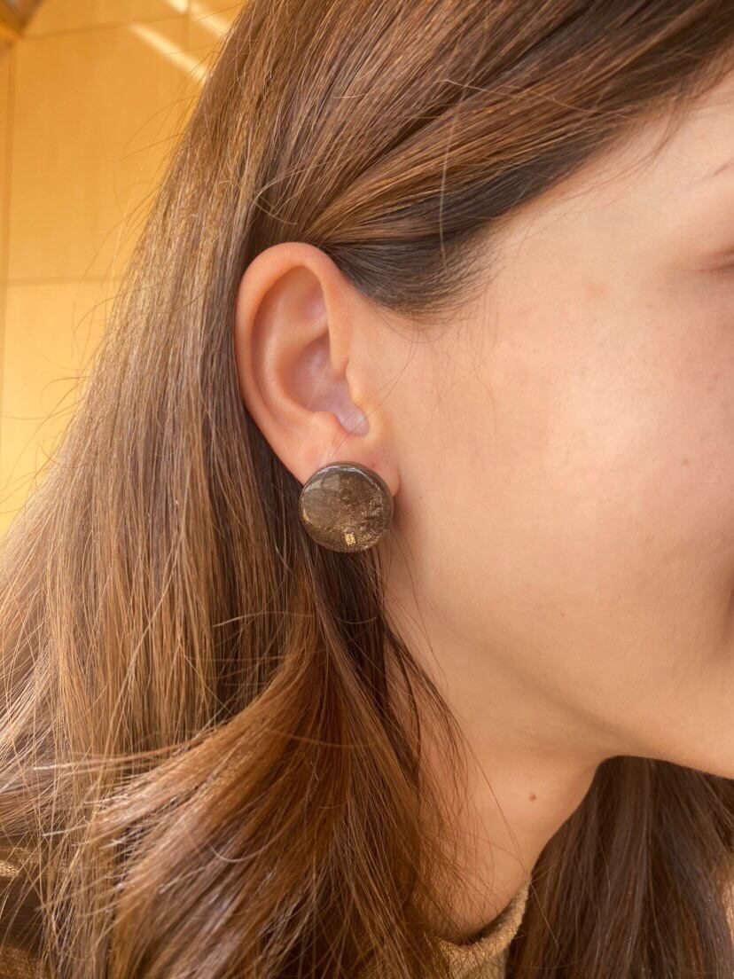 #ラウンド#耳にフィット#ブラウン#天然石