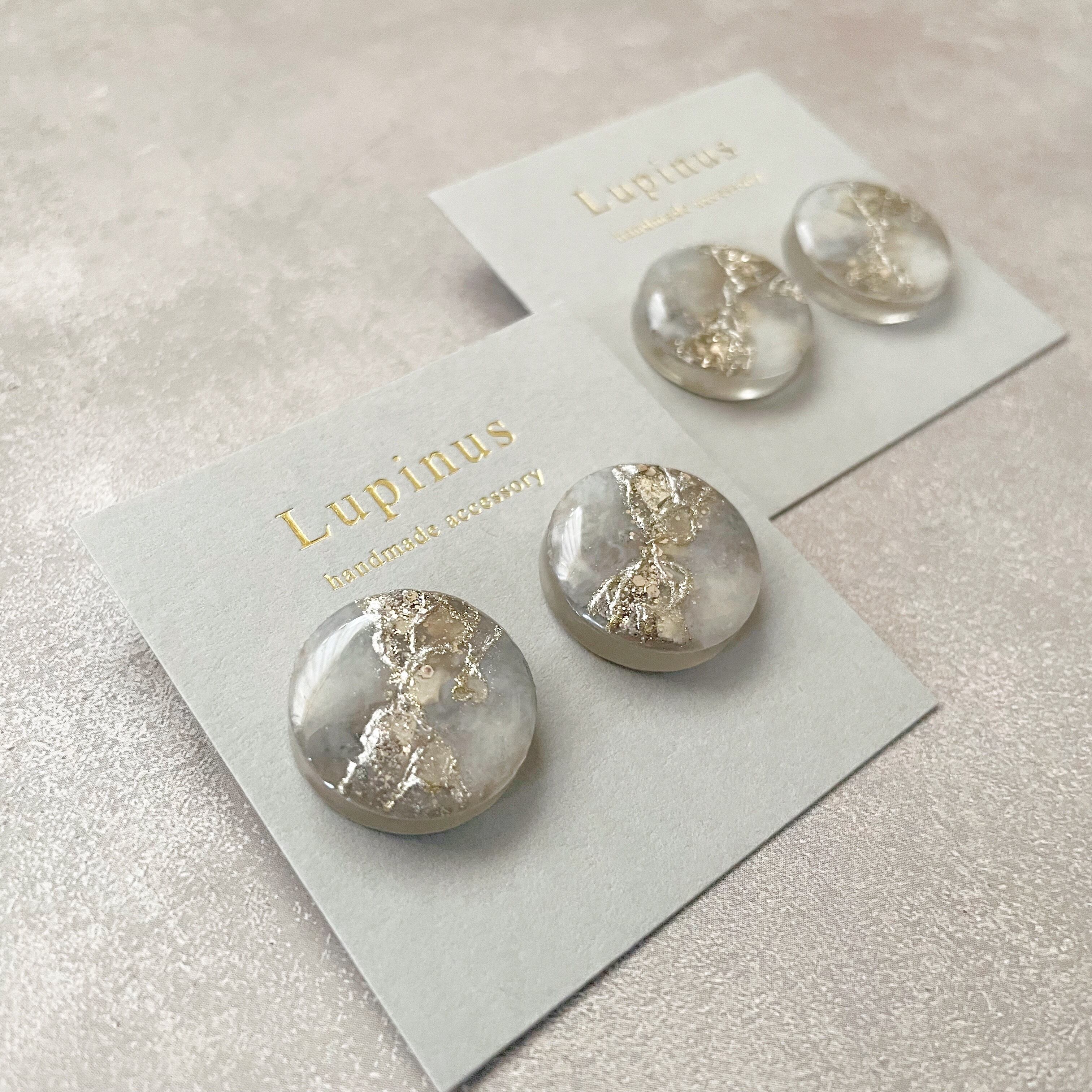 #ラウンド#耳にフィット#グレージュ#天然石
